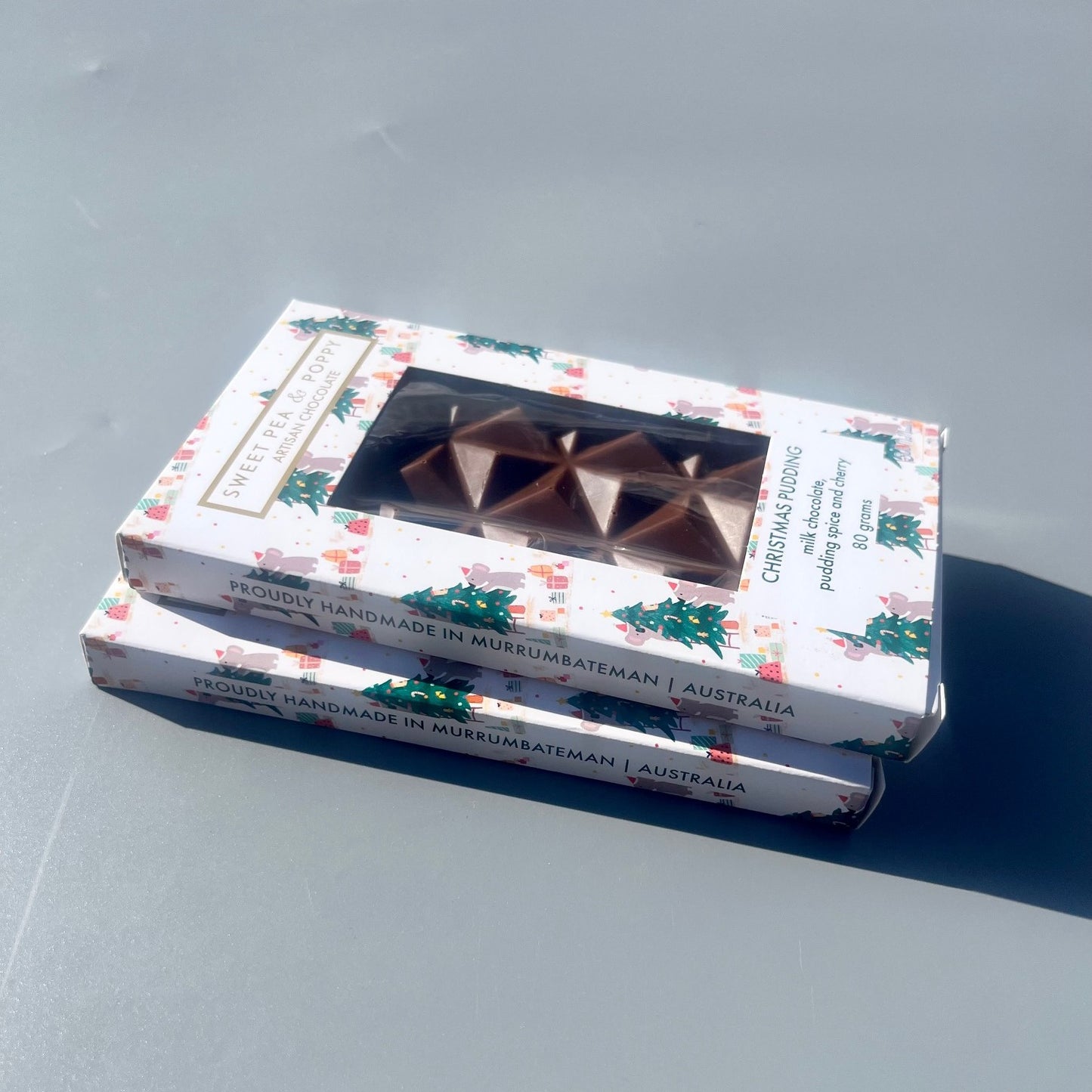 One of three limited edition Christmas bars, this sits in packaging illustrated by Australian artist Suki McMaster.